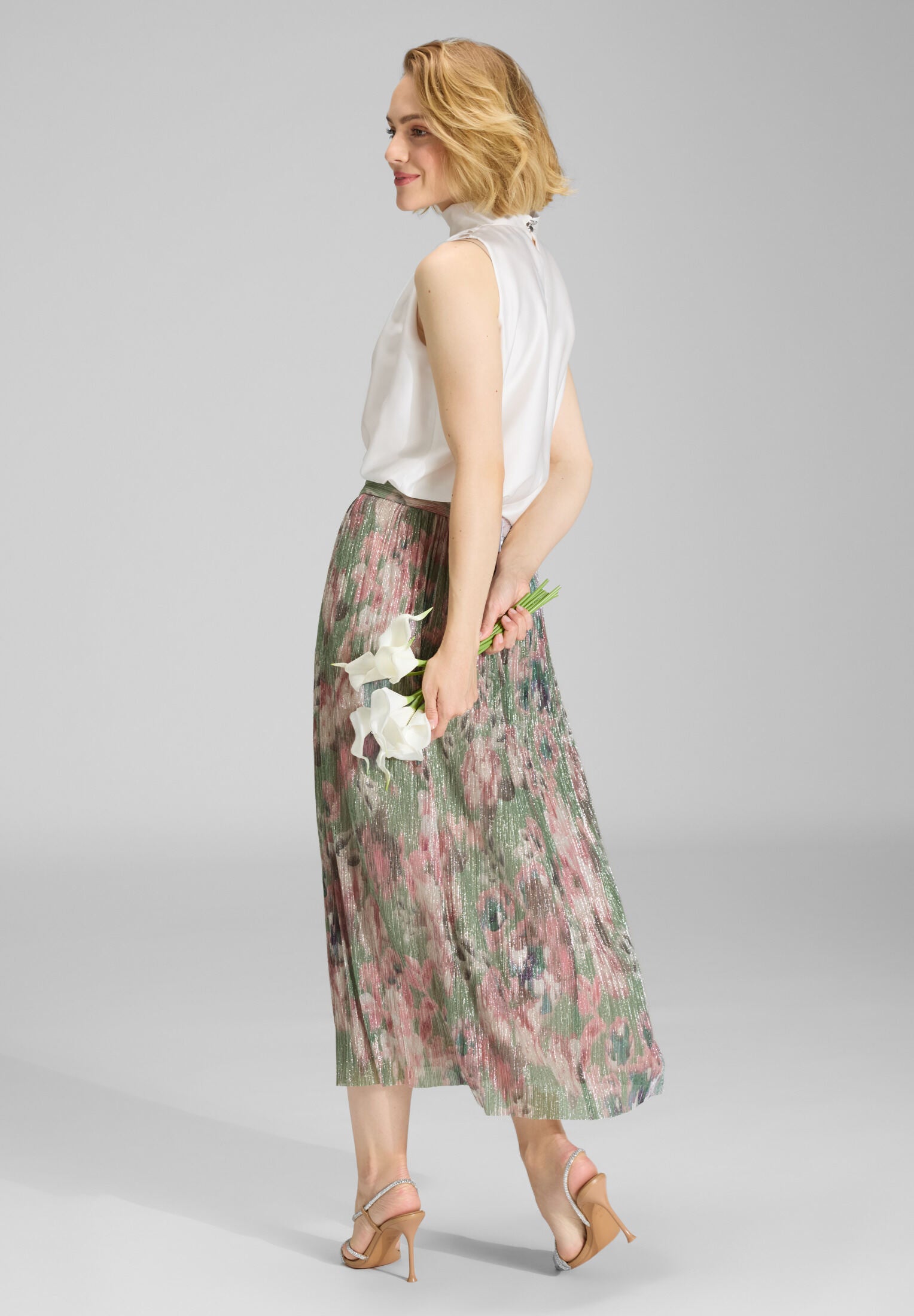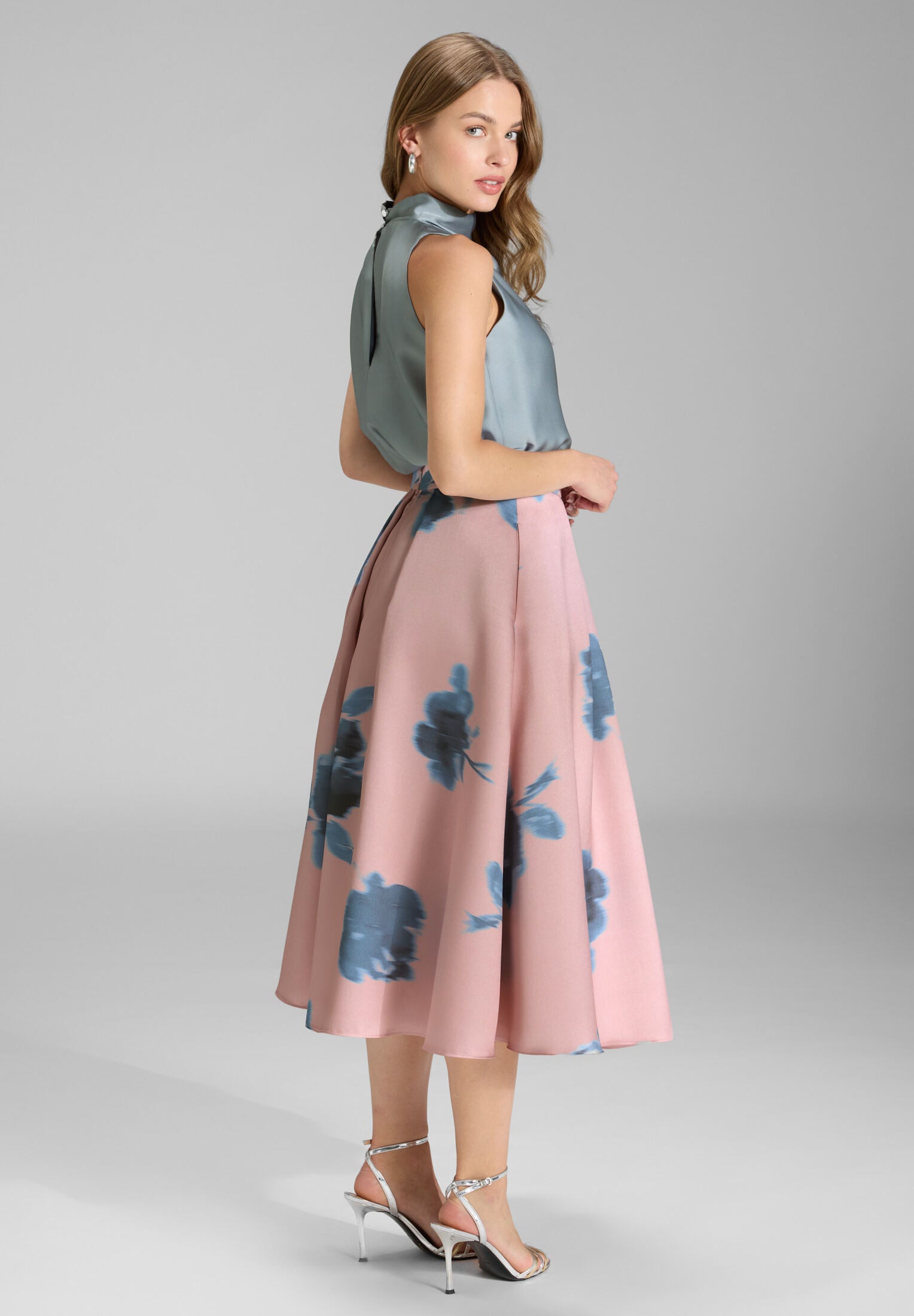 Ärmelloses Top aus nachhaltigem Satin mit Drapierung am Kragen