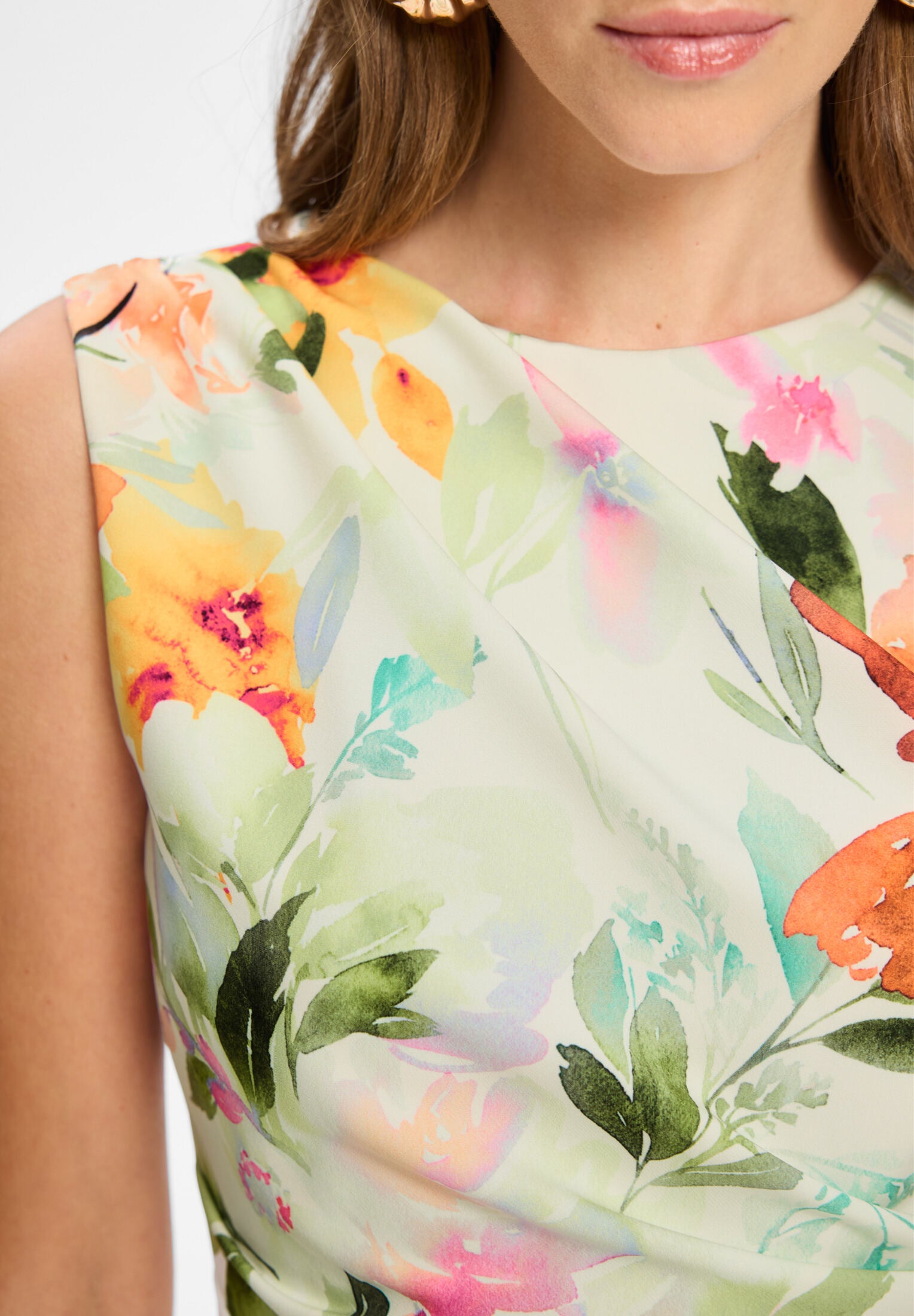 Jumpsuit aus leichtem Scuba mit Blumendruck und Drapierung