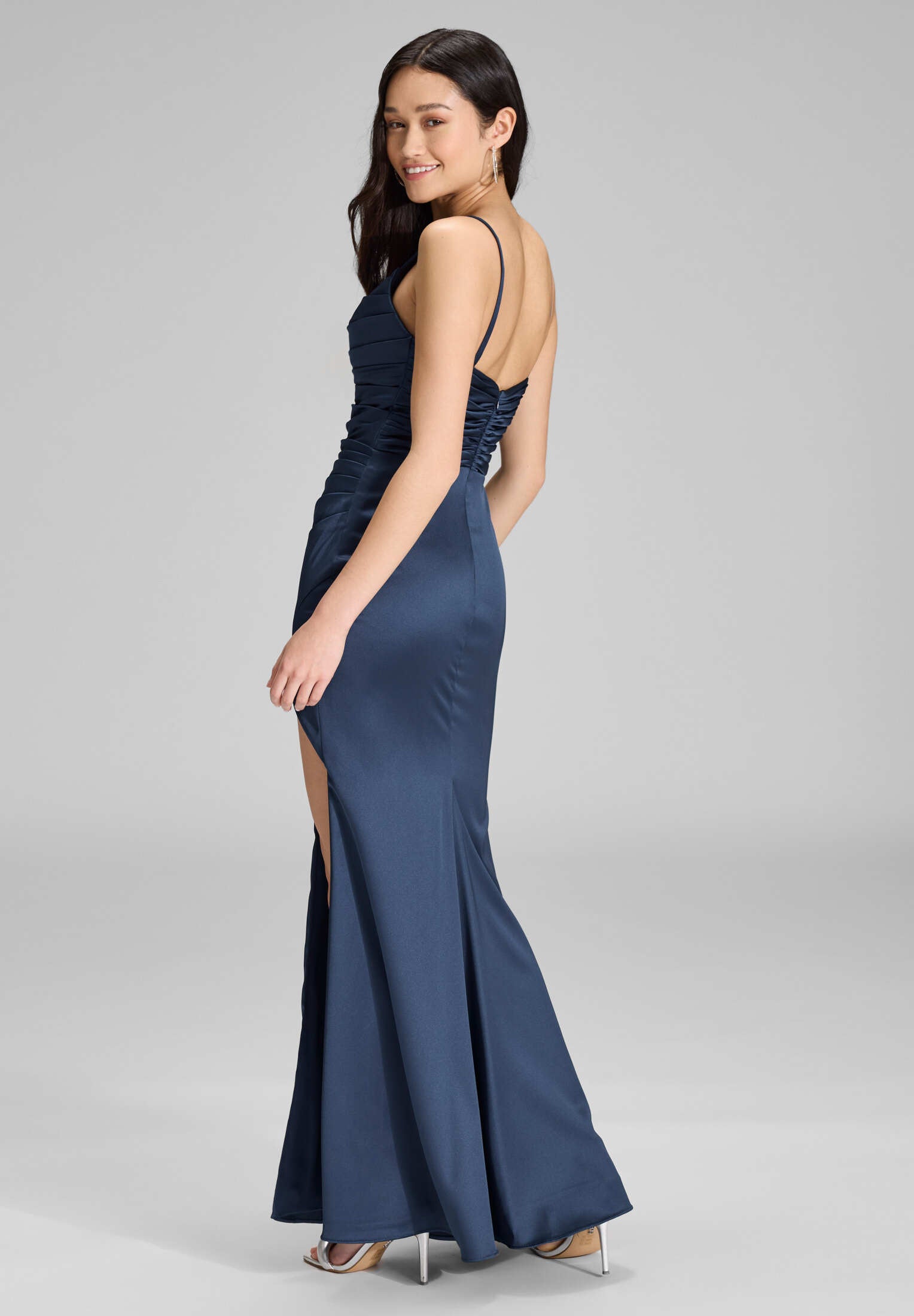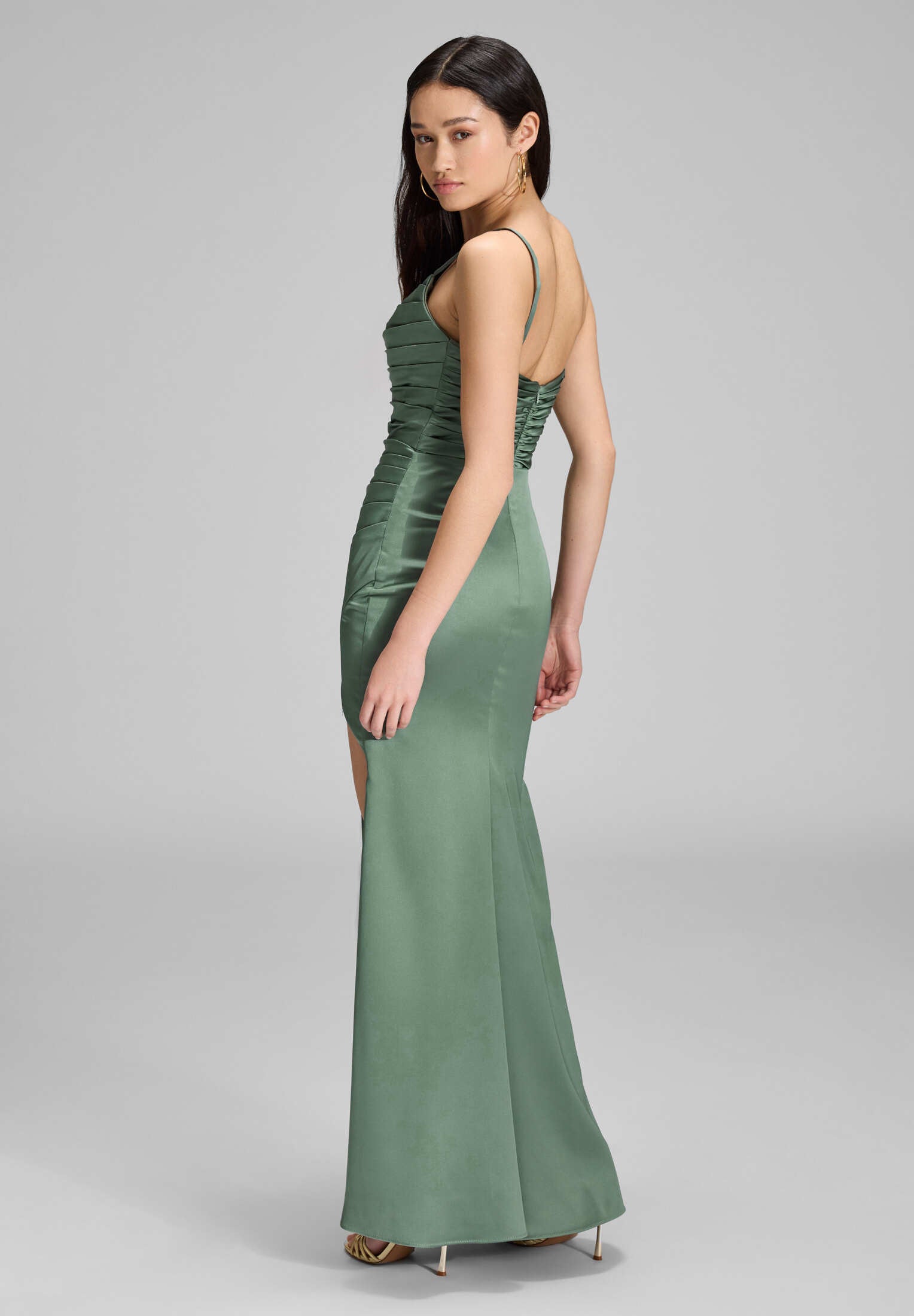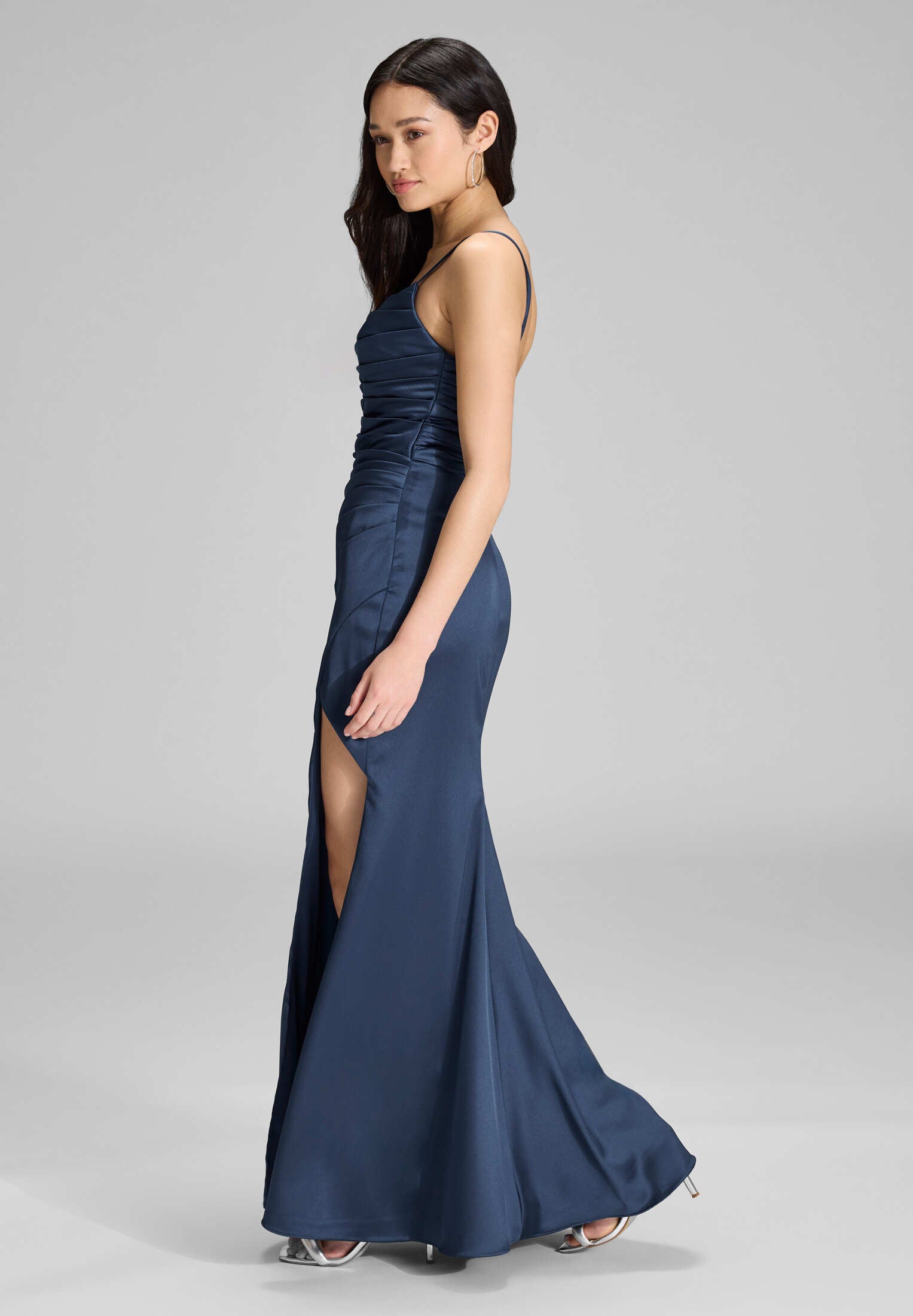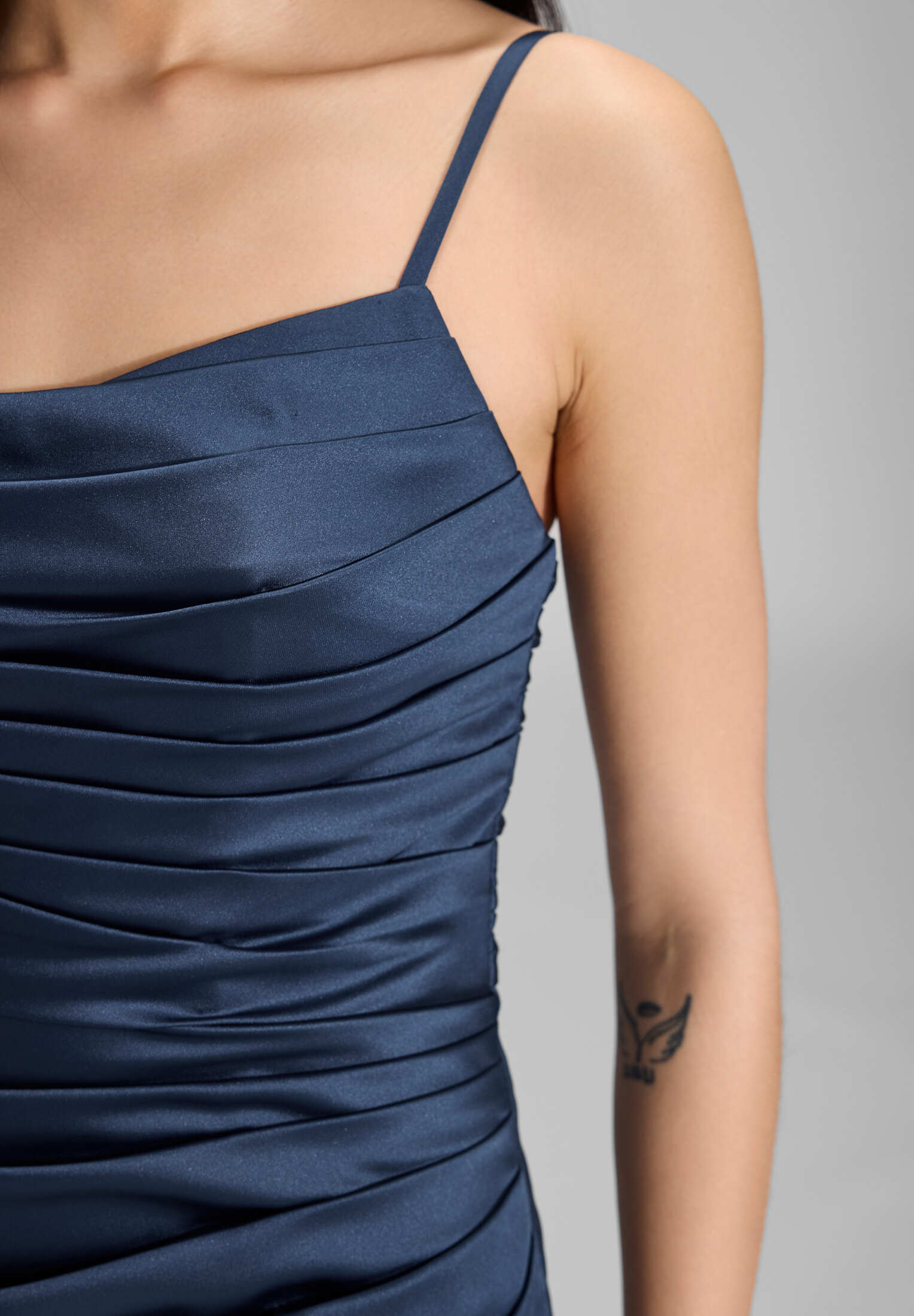 Satinkleid mit Raffungen und hohem Beinschlitz