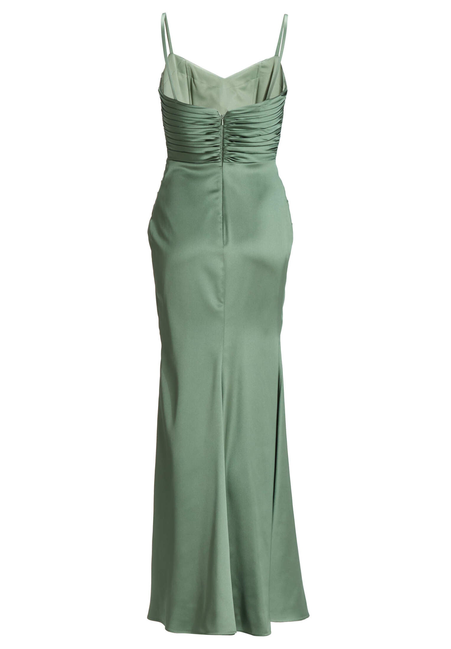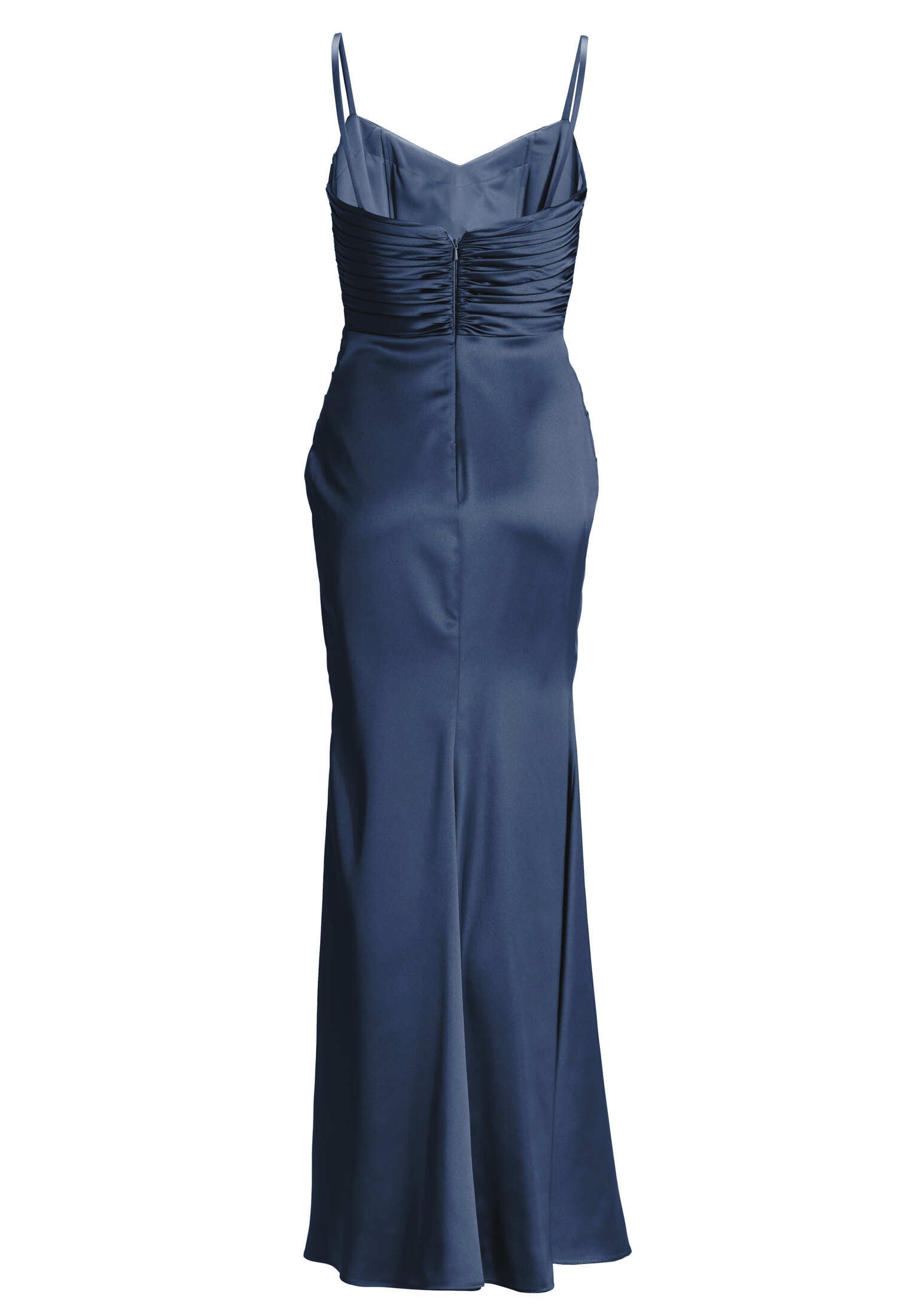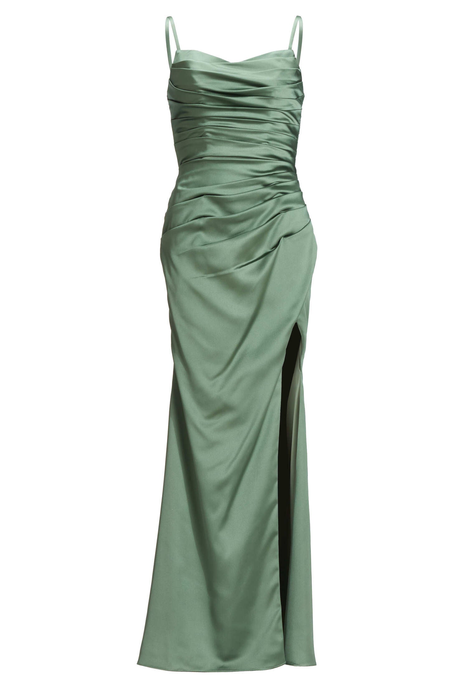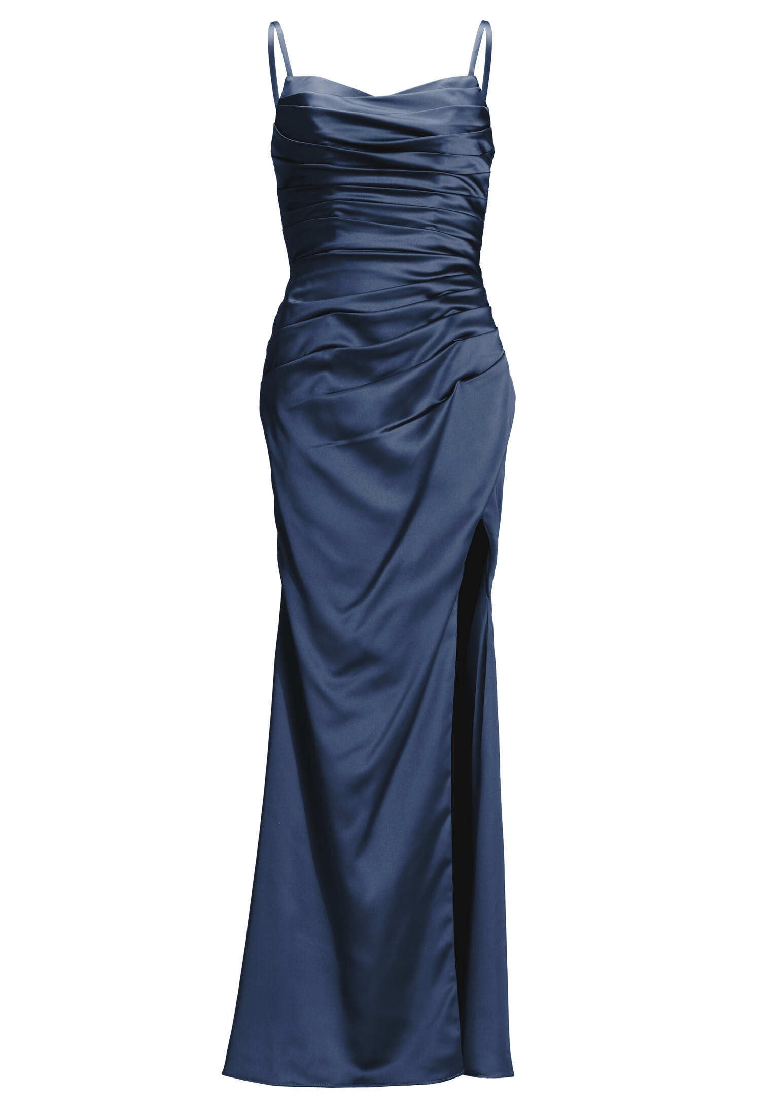 Satinkleid mit Raffungen und hohem Beinschlitz