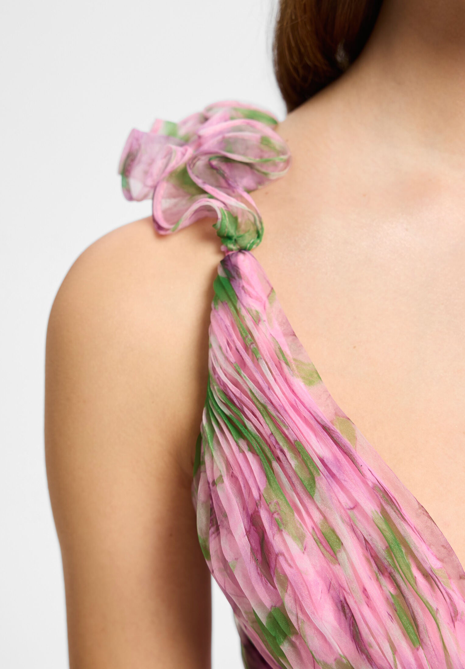 Abendkleid mit floralem Print und Rüschendetails