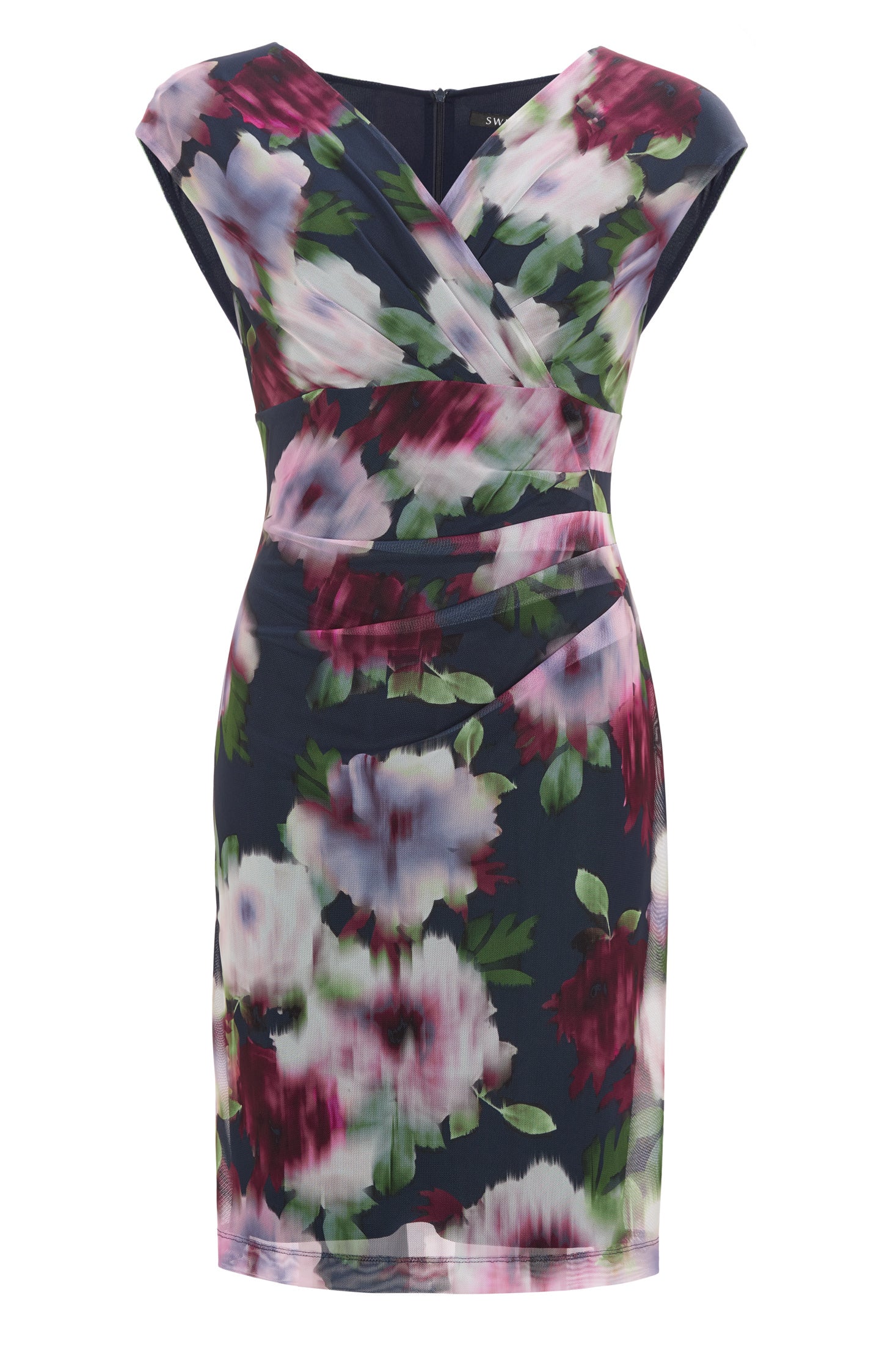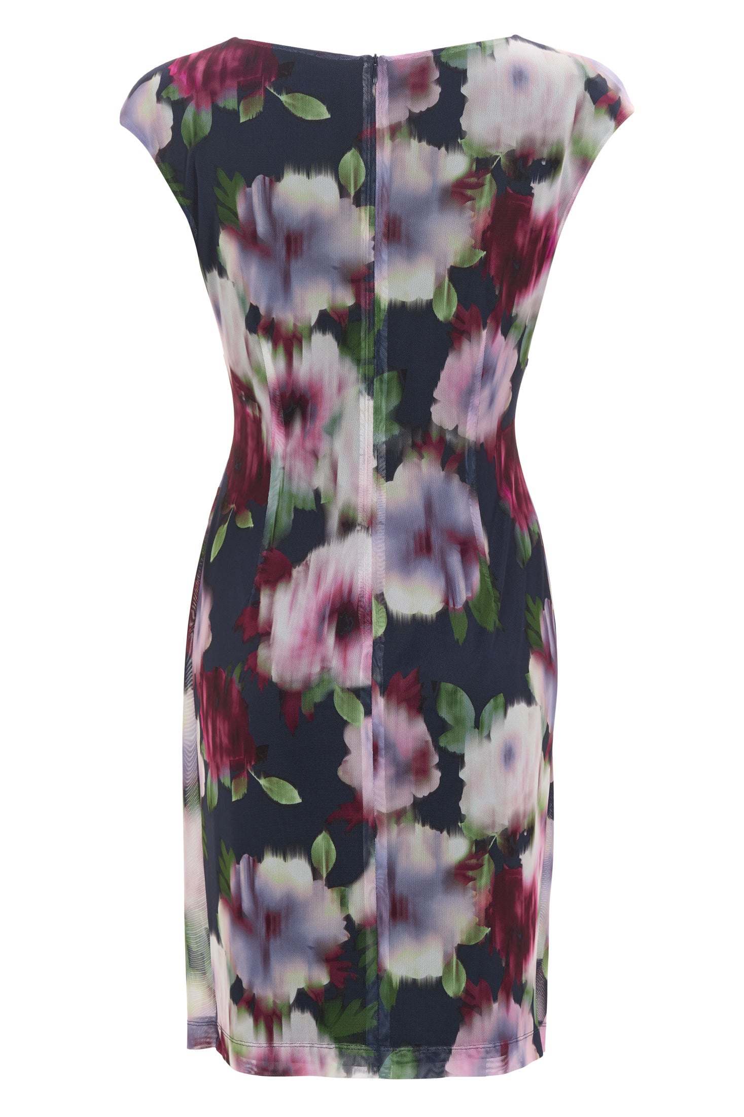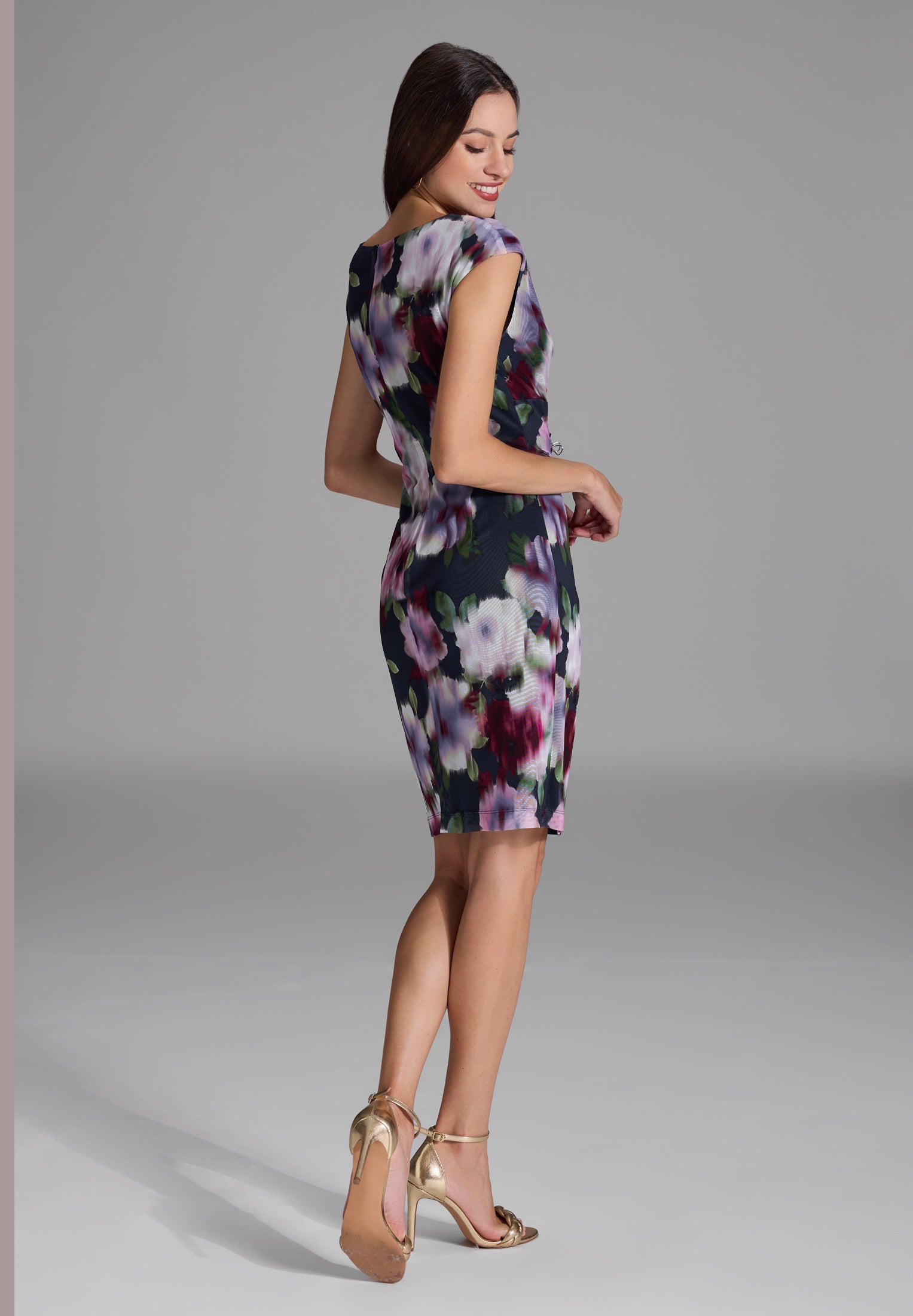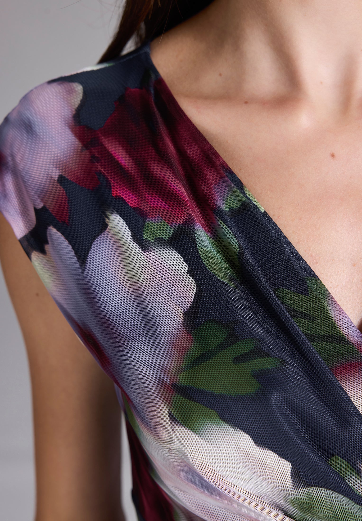 Etuikleid mit Wickel-Ausschnitt aus bedrucktem Mesh